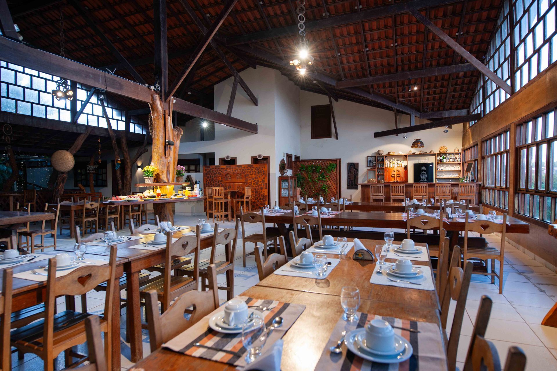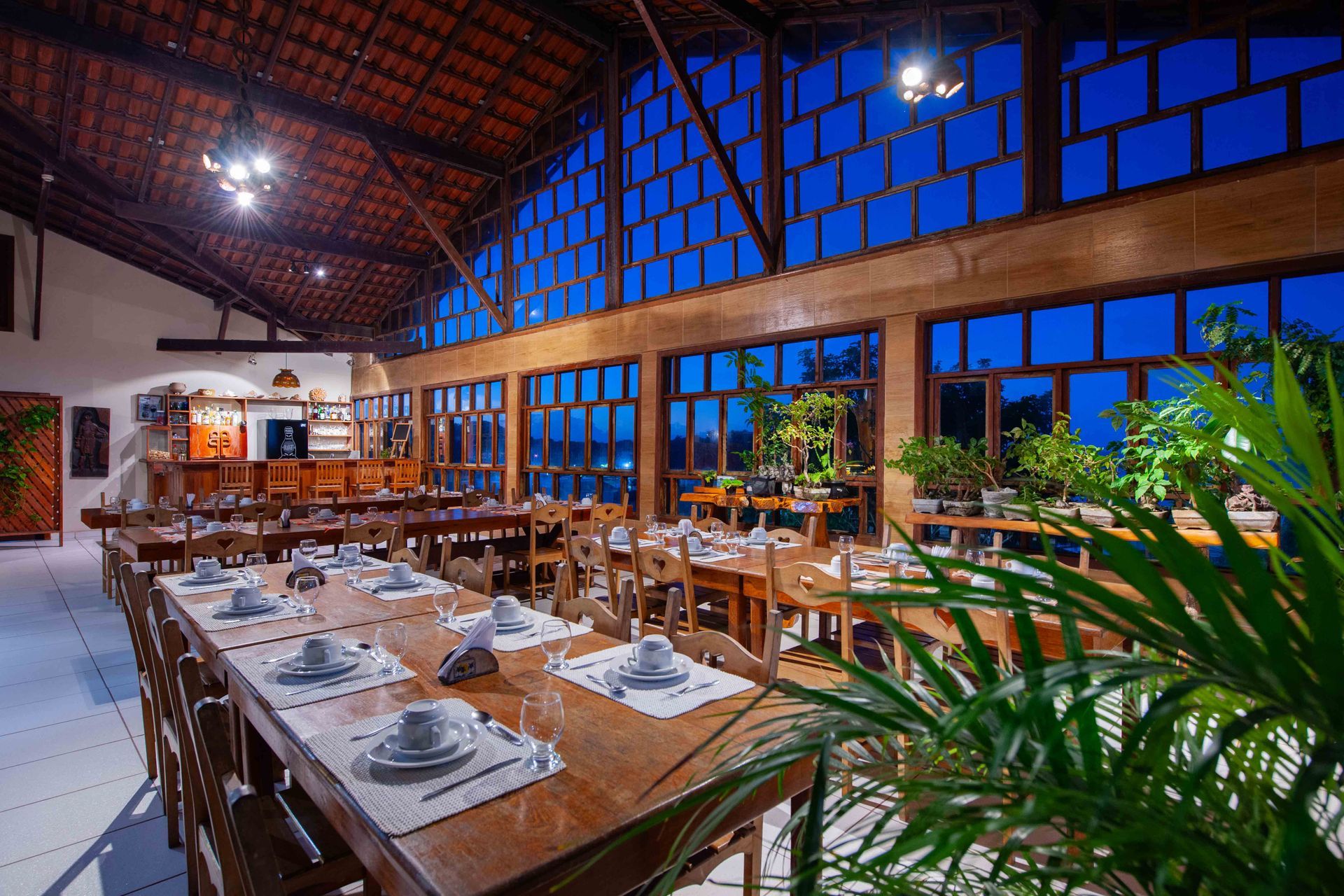 A mini floresta interna, cuidadosamente preservada e enriquecida com espécies da mata atlântica, cria um ambiente único e relaxante.